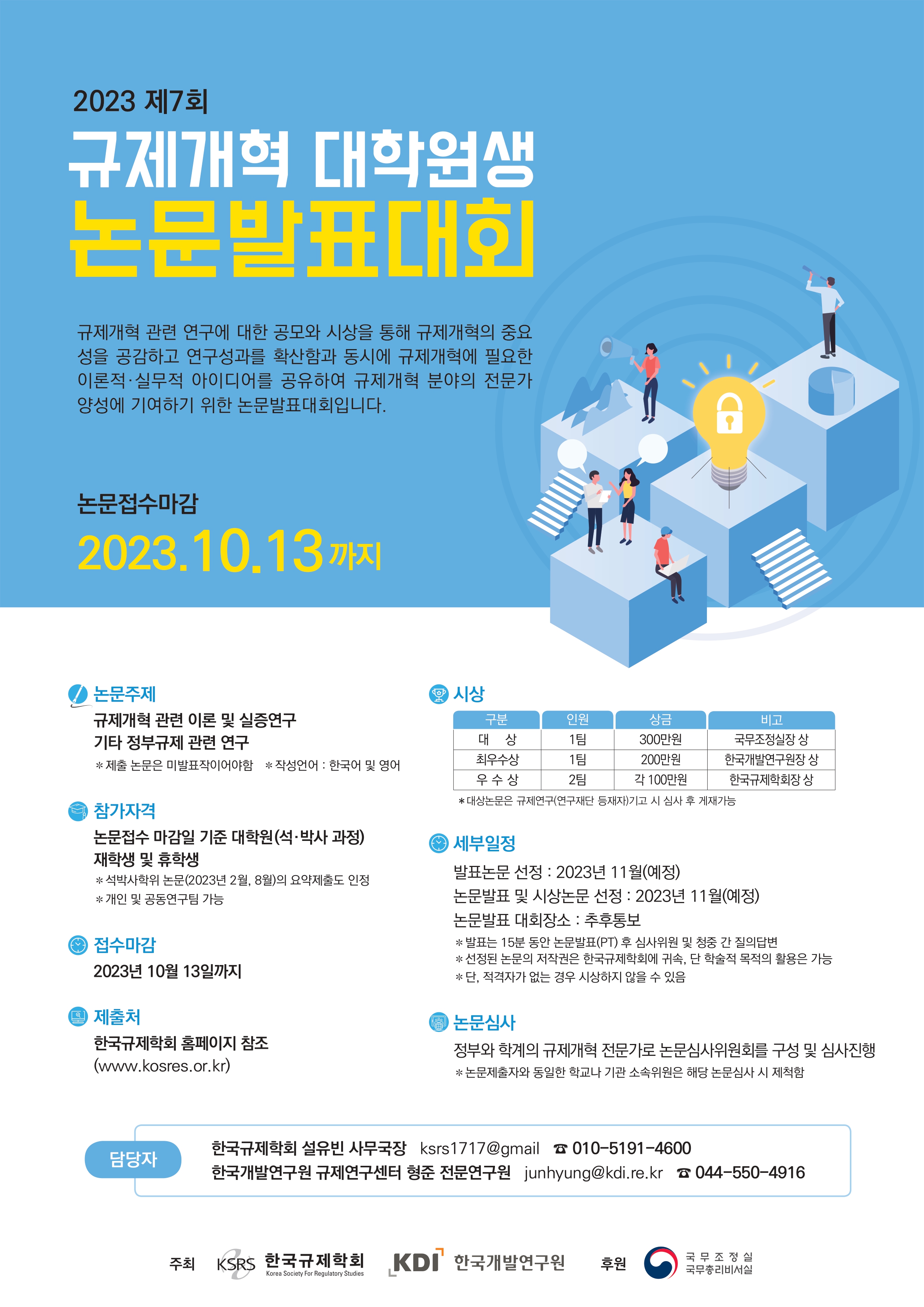 오는 2023년 11월 중(일정 추후 공지)  제7회 규제개혁 대학원생 논문  발표대회 가  개최됩니다.