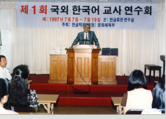 한글학회는 세종대왕 나신 600돌을 기리어 세종 정신을 북돋우고 세계 속의 한국어를 널리 펴기 위하여 전 세계에서 한국어를 가르치고 있는 교원들에게 바르고 효율적인 한국어 교수 방방법을 공유하고자 문화체육관광부(그때는 문화체육부) 국고보조사업으로 1997년부터 '국외 한국어 교원 연수회'를 마련하였습니다.