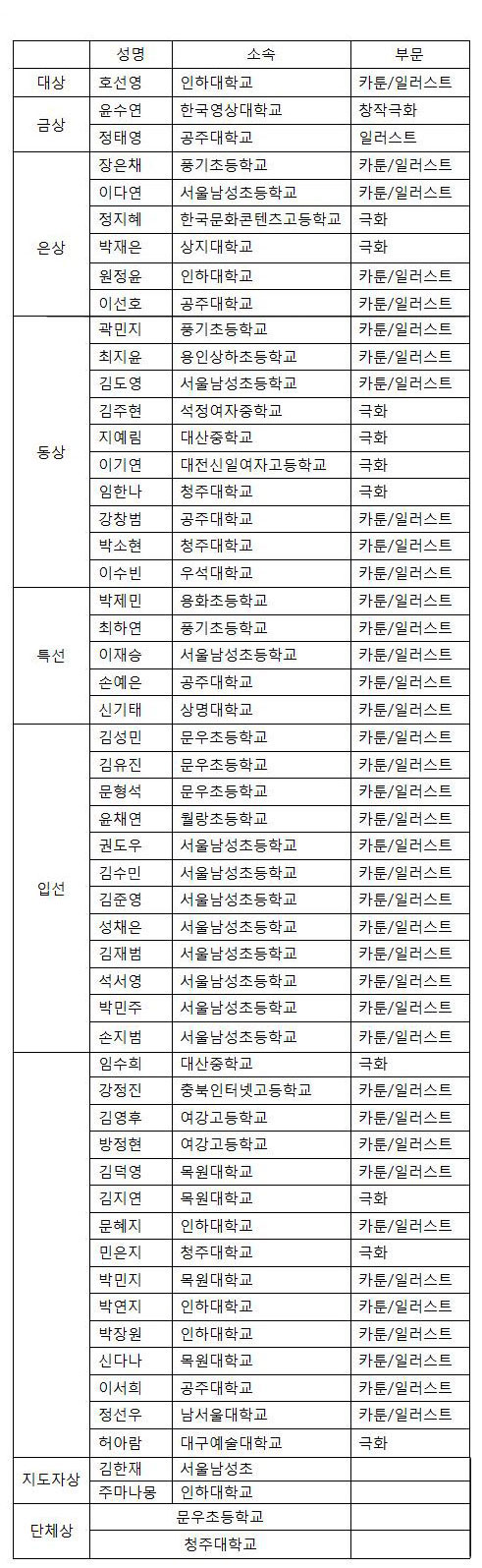 제5회 한의학 만화공모전 수상자를 다음과 같이 발표합니다.