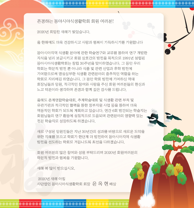 감사의 인사 (2019년도 동아시아식생활학회 추계학술대회 참가자 여러분께)