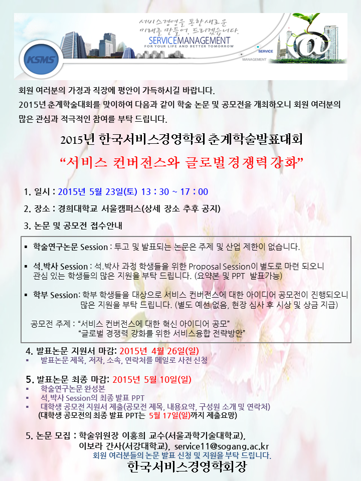 2015 한국서비스경영학회 춘계학술발표대회 일정 및 논문 모집 안내_지원마감일 수정