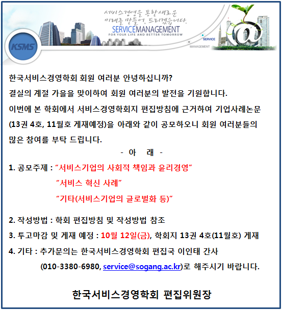 2012 한국서비스경영학회 기업사례 논문 공모 안내