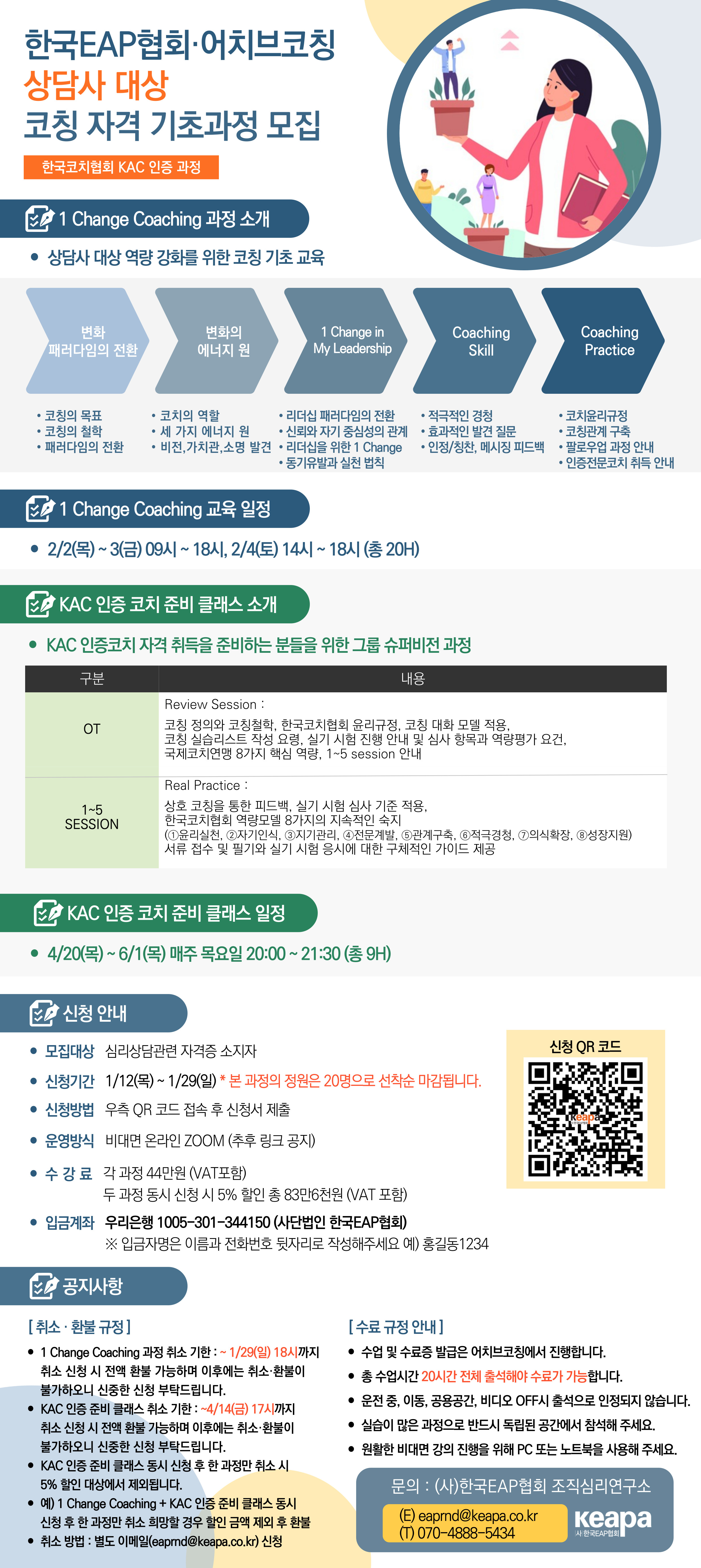 1) 1 Change Coaching(20H) :   2/2(목)~3(금) 09시~18시, 2/4(토) 14시~18시 (총 3회)