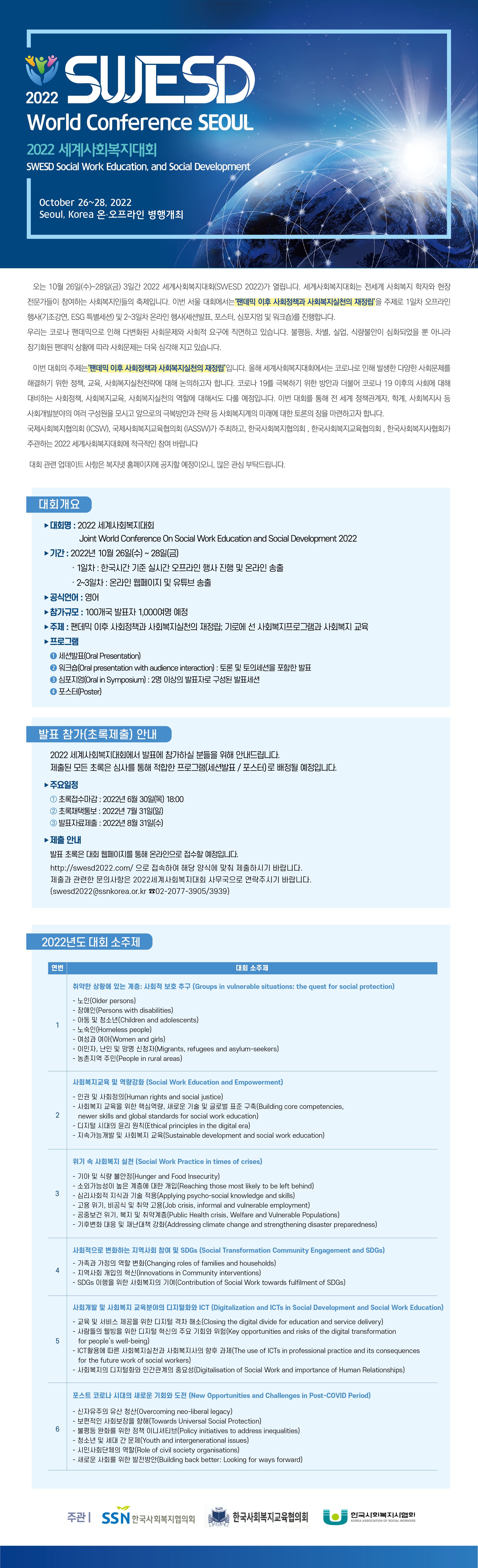 - 대회명 : 2022 세계사회복지대회
