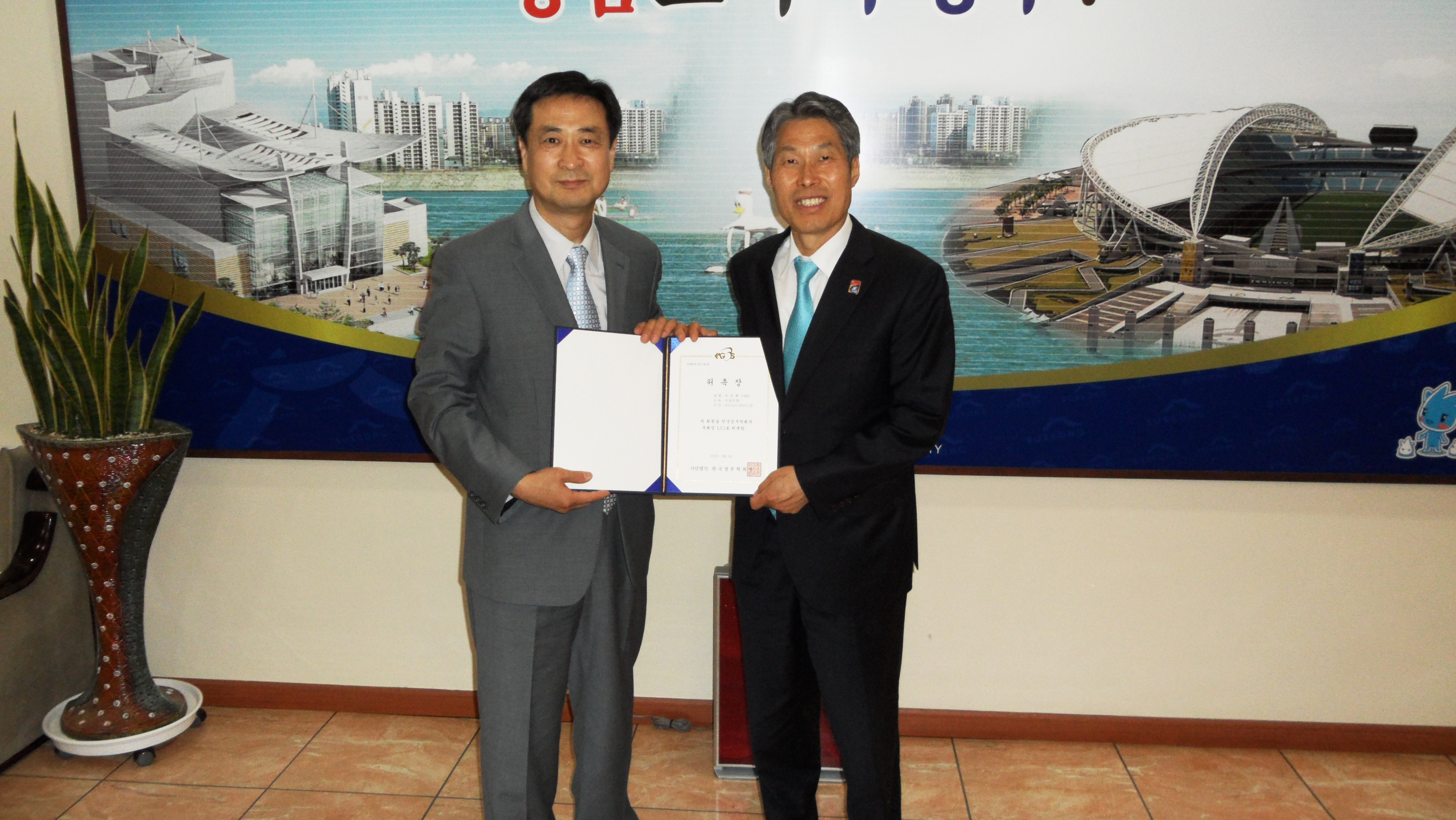 방문, 이진훈 구청장에게 학회 부회장 위촉장 전달과 학술대회 관련 협의를