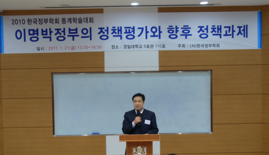 한국정부학회 동계학술대회 및 정기총회에서 김광주 교수(경일대)님이 32대 회장으로 취임하셨습니다. 회원 여러분의 많은 참여와 협조를 부탁드립니다.