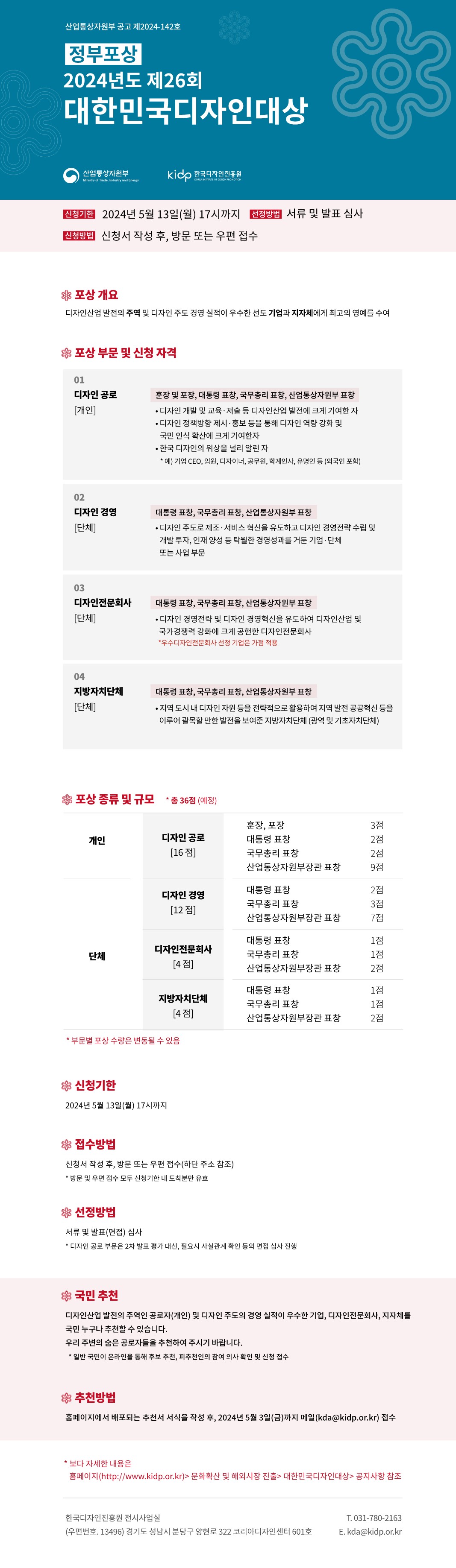 [한국디자인진흥원] 2024년도 제26회 대한민국디자인대상 공고 및 포상요령