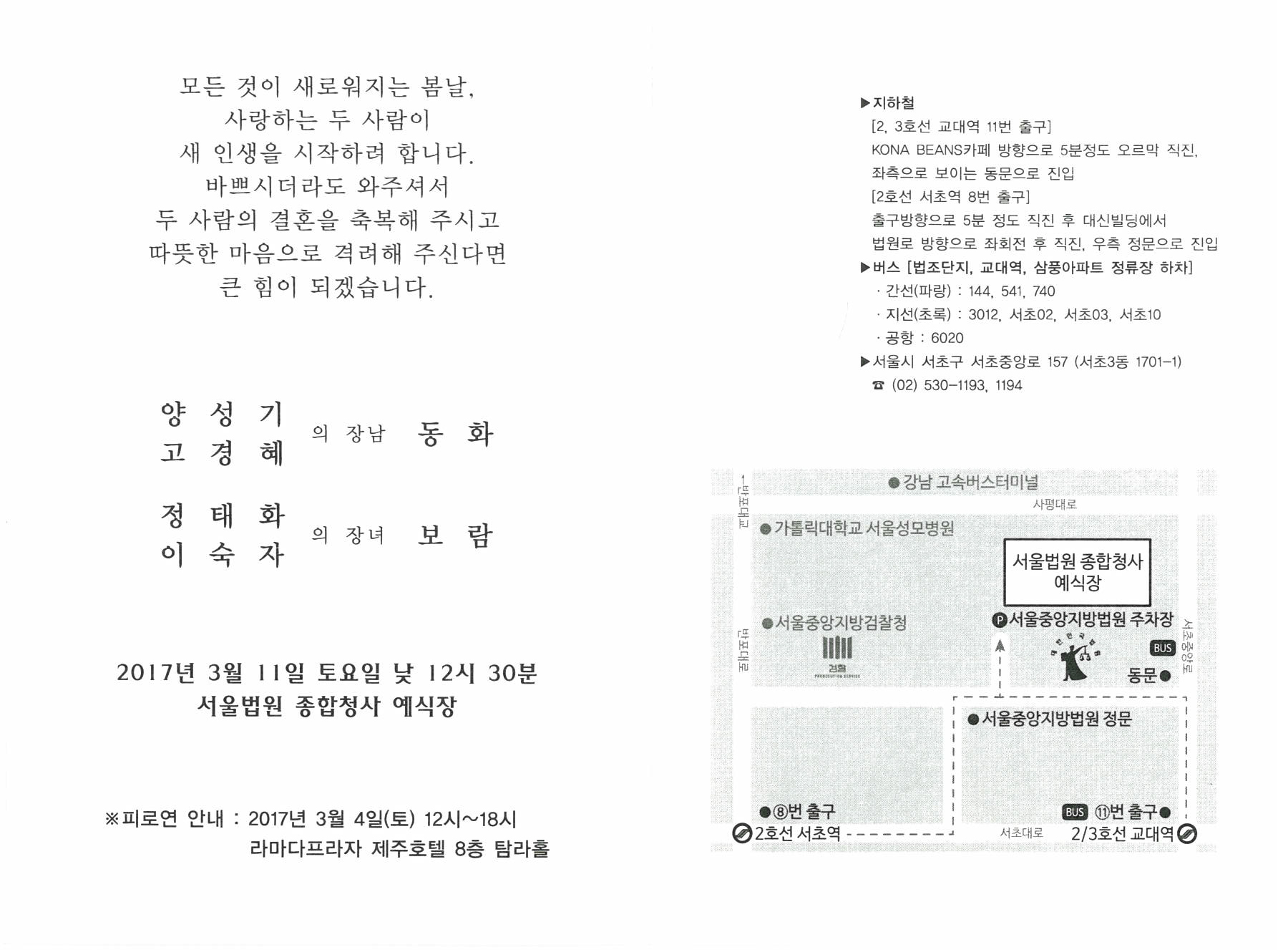 2. 장 소 서울법원 예식장(서울시 서초구 서초중앙로 157)
