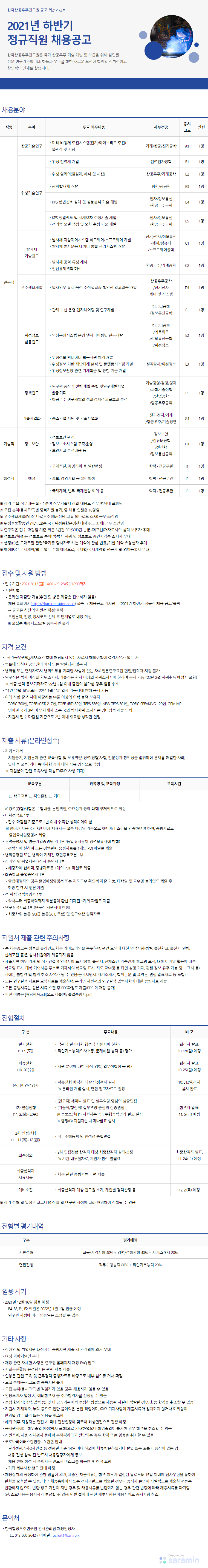 [한국항공우주연구원] 2021년 하반기 정규직 채용 안내
