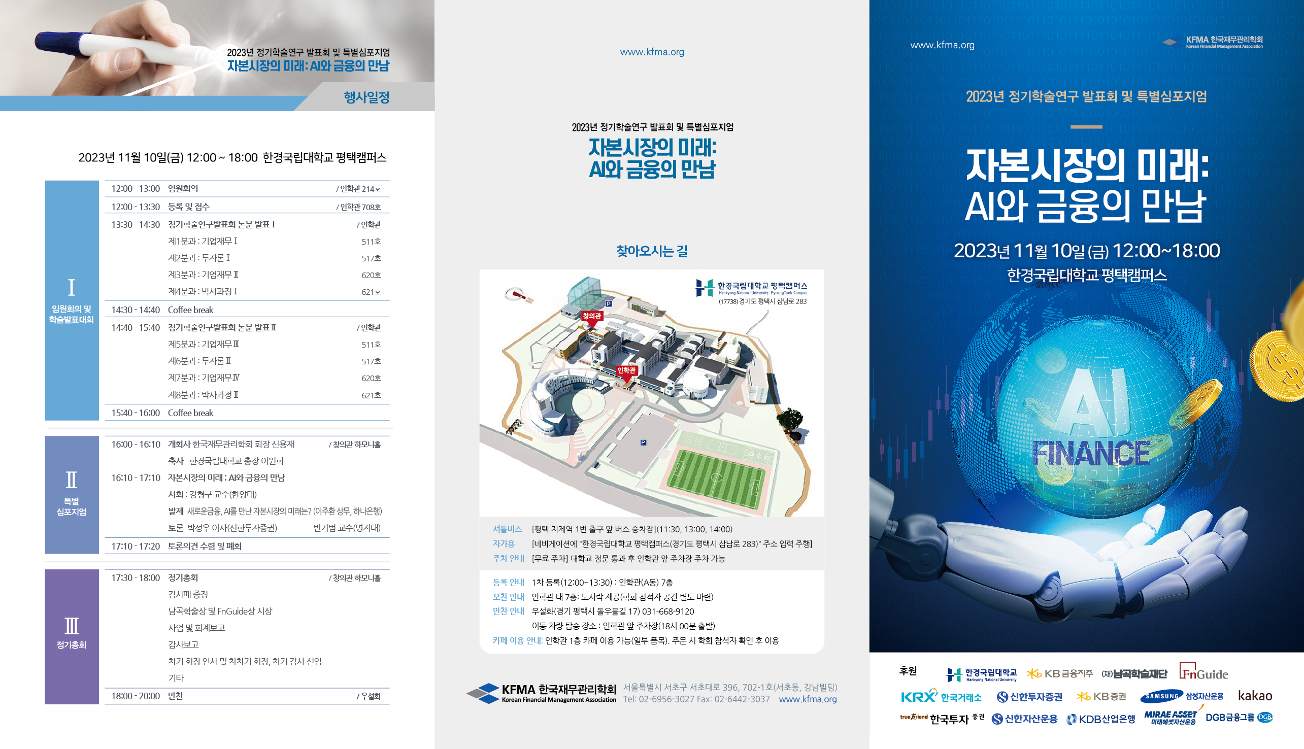 2023년 한국재무관리학회 정기학술연구 발표회 및 특별심포지엄 / 정기총회 초대의 글