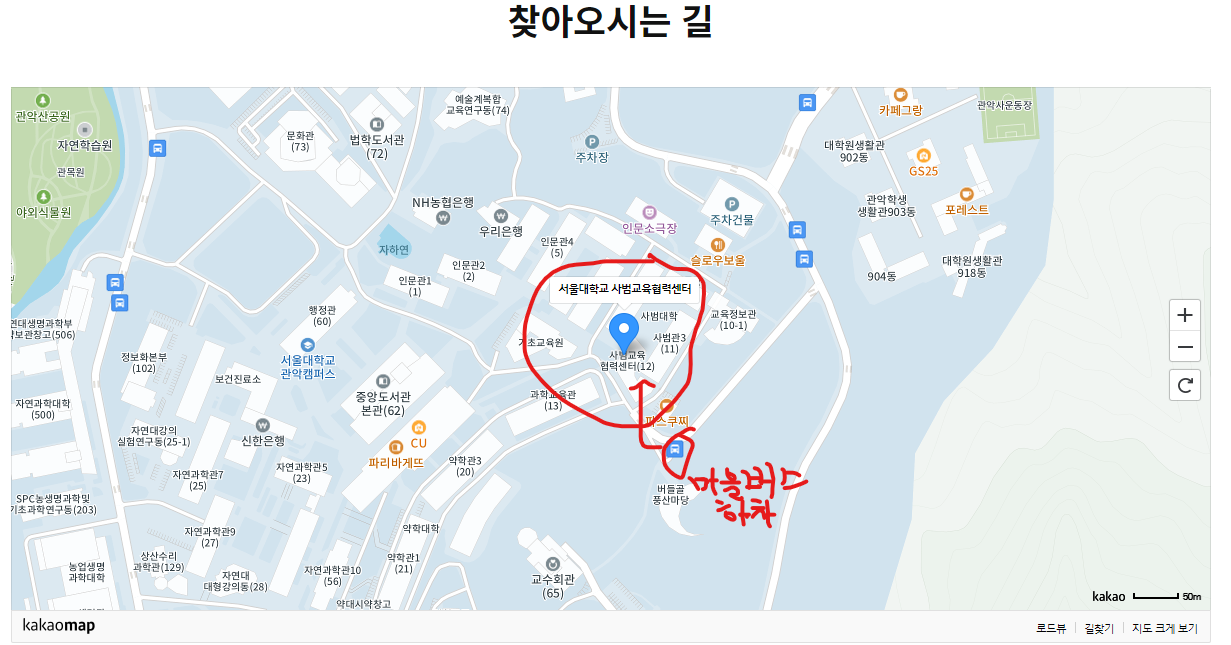 오시는 길:  지하철2호선 낙성대역 4번출구--마을버스 [관악2번]승차--기숙사삼거리 하차(첨부파일 지도참조)