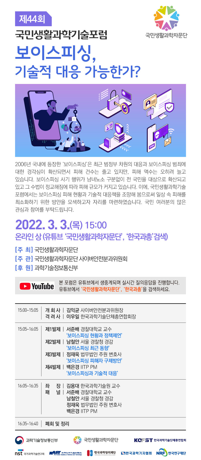[제44회 국민생활과학기술포럼](3.3(목), 15시)보이스피싱, 기술적 대응 가능한가
