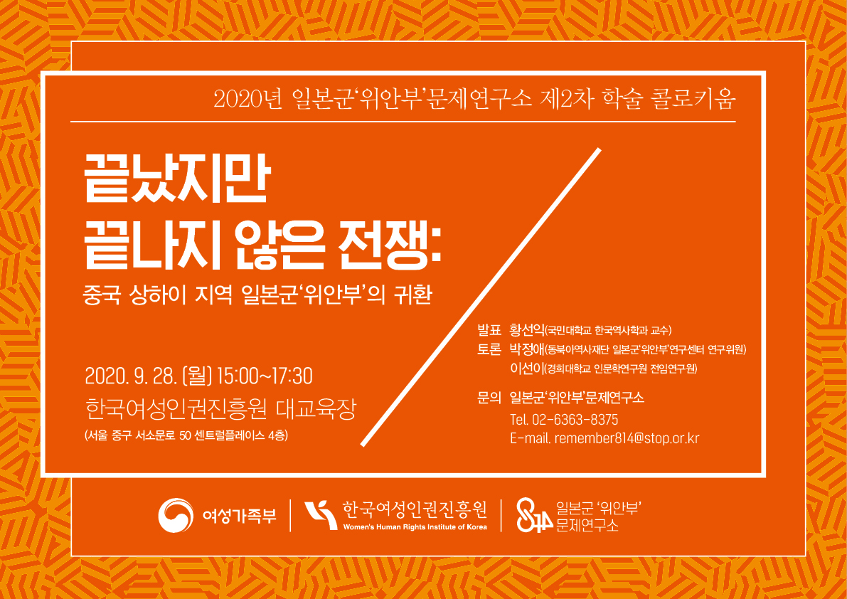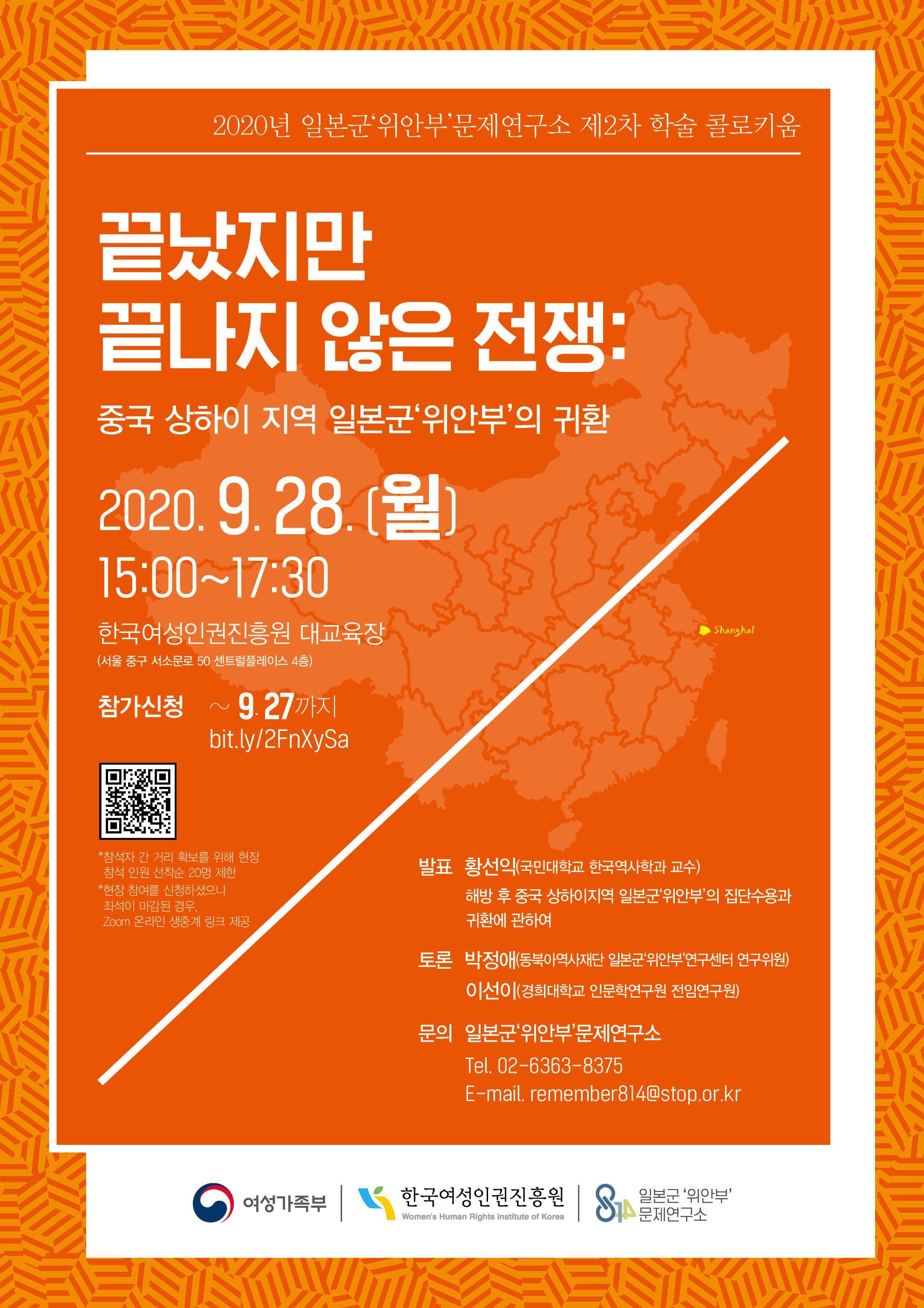 가. 행 사 명 : 일본군'위안부'문제연구소 2020년 제2차 학술 콜로키움 - 끝났지만 끝나지 않은 전쟁: 중국 상하이 지역 일본군'위안부'의 귀환