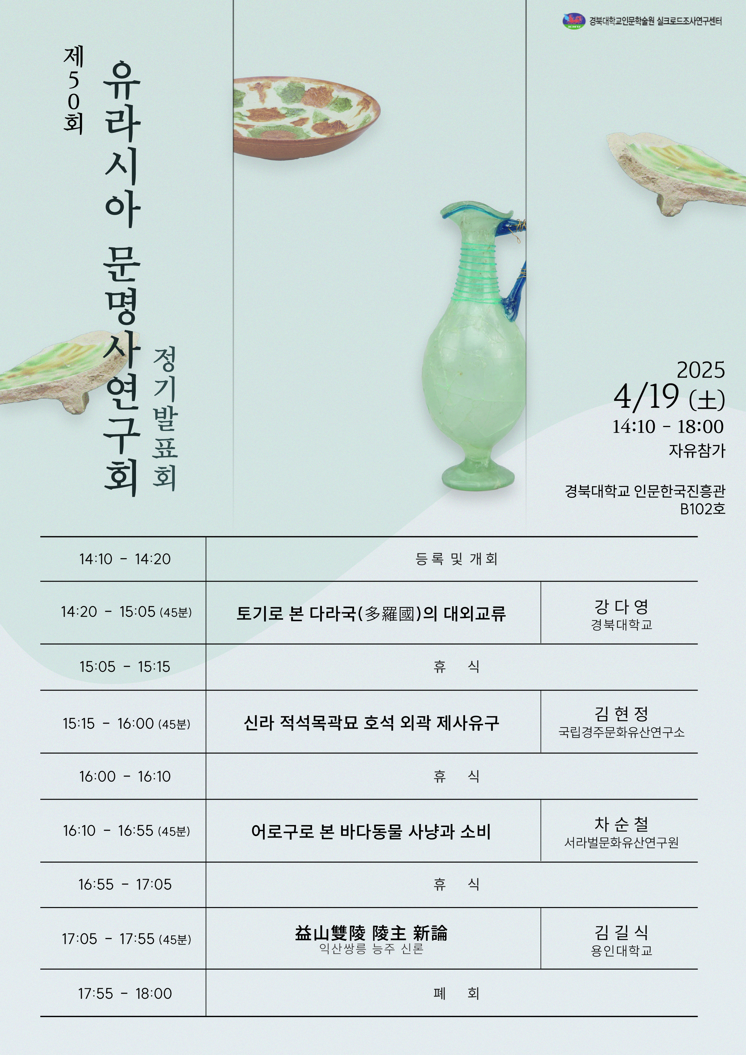 2025년 4월 19일 토요일, 유라시아문명사연구회 제 50회 정기발표회가 진행될 예정입니다.