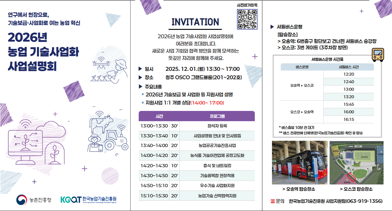 「2026년 농업 기술사업화 사업설명회」에 많은 관심과 참여 부탁드립니다.