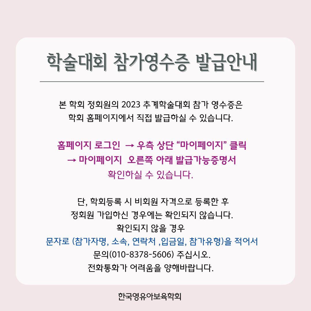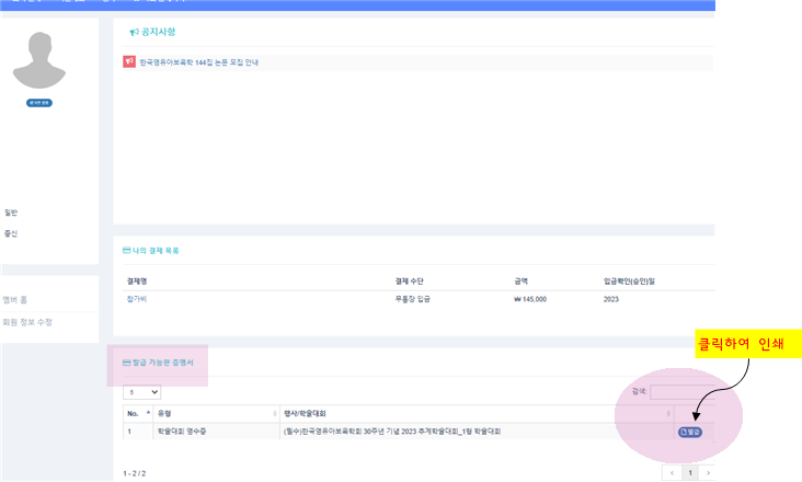 단, 학회등록 시 비회원 자격으로 등록한 후 정회원 가입하신 경우에는 확인되지 않으실 수 있습니다.