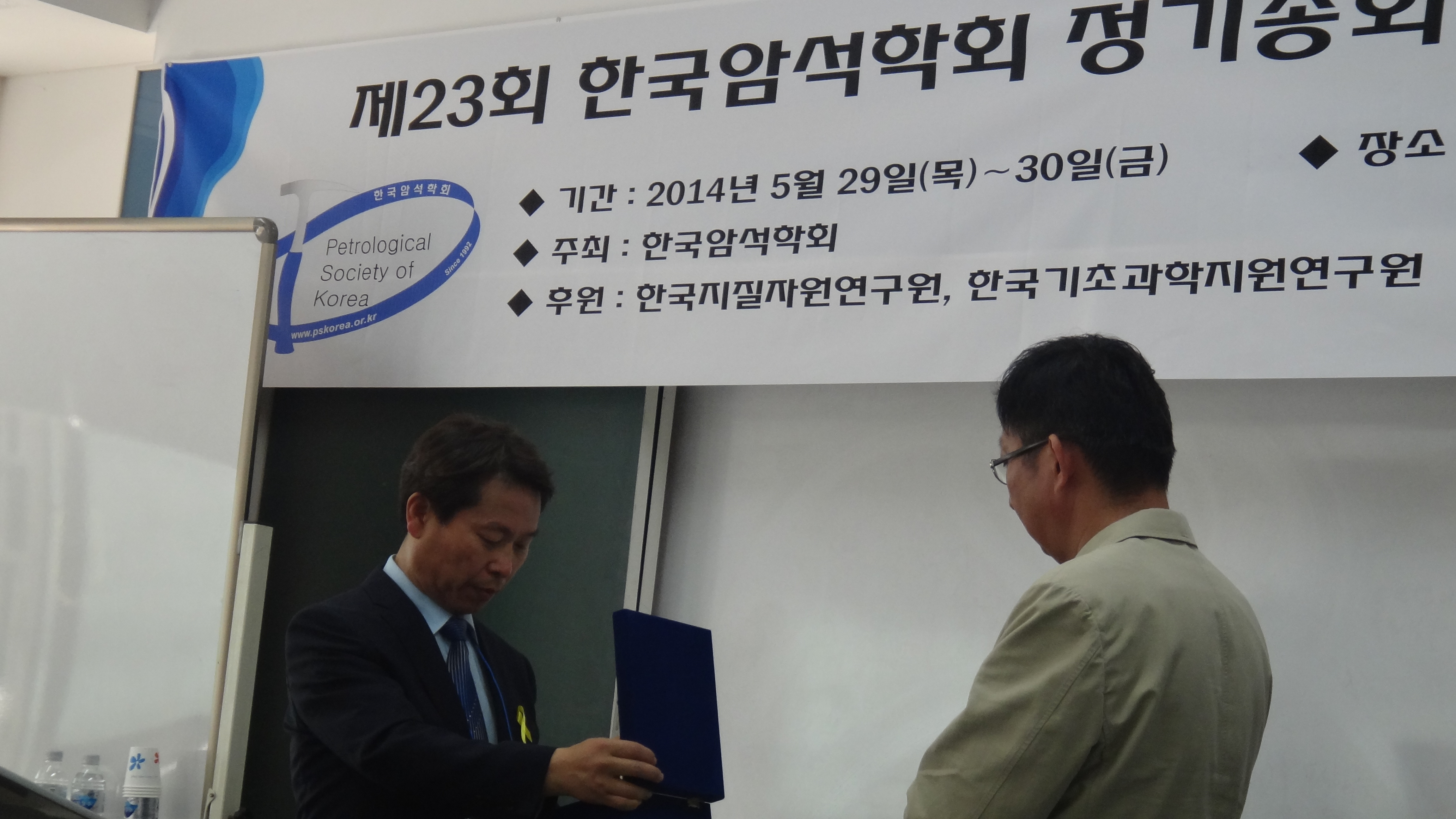 올해 도암학술상은 부산대학교 자연과학대학 지질환경과학과의 손 문 교수가 선정되었습니다. 오창환 학회장님께서 상장과 부상을 전달하셨습니다.